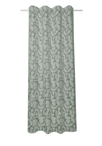 Sehlbach Färdiga gardiner med gardinband, Chenillegarn grafik, Grön, 135 x 245 cm Gardiner, Ogenomskinligt tyg, Integrerat band, Dolda öglor, Oeko-Tex certifierad, Lätt att installera