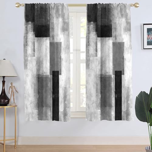 AAtter Svart Grå och Vit Fönstergardin Grå Abstrakt Geometrisk Silver Konst Estetisk Pojkar Tonåring Minimalistiskt Vardagsrum Sovrum Fönster Gardiner Behandling Tyg 1 Par Heminredning, 107 cm B x 160