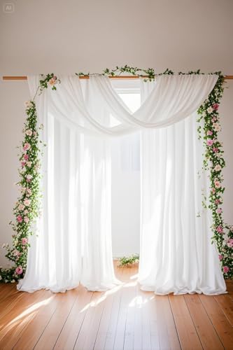 Bröllopsbåge draperingstyg 3 paneler 70 cm x 45 cm vit båge drapering chiffong tyg genomskinlig bakgrund gardiner för festceremoni bröllop takdekorationer