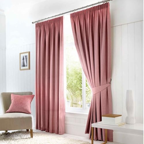Fusion rosa mörkläggning B 90 x L 72 penna rosa – 2 x paneler-termiska sovrum och vardagsrum-veckade gardiner i Blush Dijon-kollektion, tyg, 229 cm bredd x 183 cm) fall (229 x 183 cm)