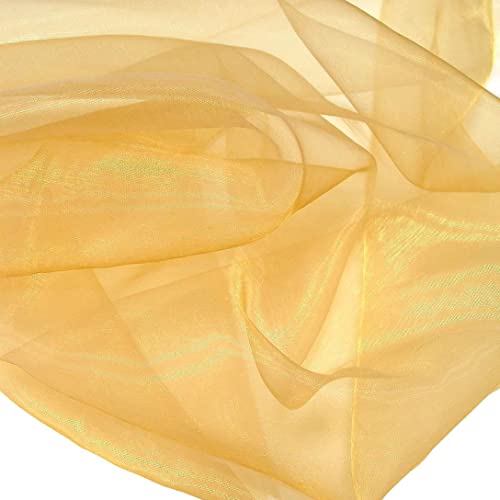 TOLKO 1 m organza-tyger för sömnad, metervara | touch delikat, fin, transparent | för att dekorera hantverk 145 cm bred | lätt glans tyg för gardiner bordsdukar dekorativa halsdukar (guld ockra)