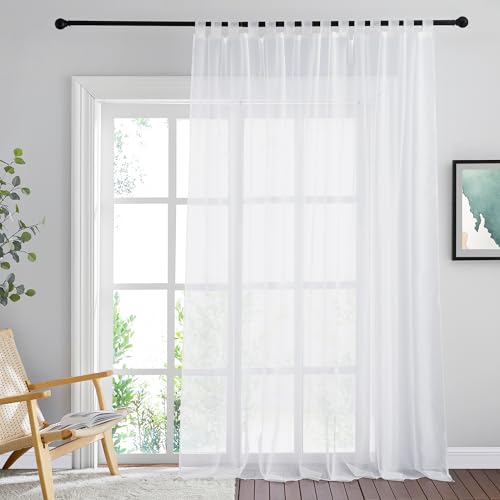 BONZER Vattentät skira gardiner inomhus utomhus 2 paneler voile gardiner med breda öljetter för vardagsrum, sovrum, veranda, pergola, cabana, 137 x 241 cm, vit