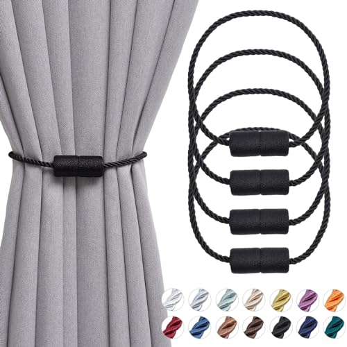 Pretty Jolly 4-pack magnetiska gardinbindningar 40 cm handgjorda vävd sida rep gardinhållare bekväm dekorativ cylindergardin draperi baktill för hem och kontor fönsterdraperi (svart)