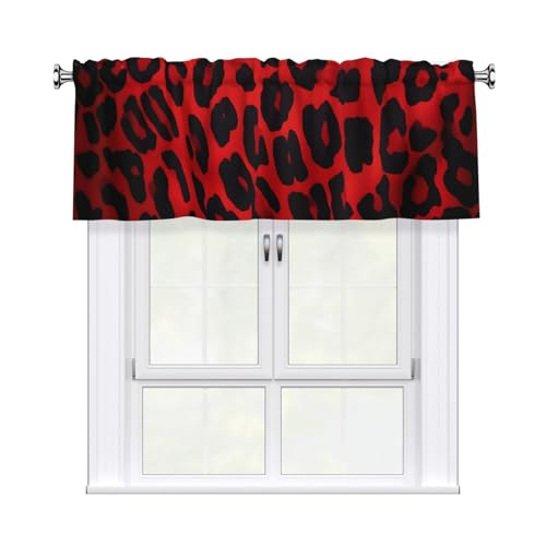 TRSGKSQP Gardiner för fönster köksvadd mörkläggning gardinkappa röd leopardmönster liten fönsterbehandling korta fönsterkappor gardin för vardagsrum badrum 137 cm x 45 cm 1 panel