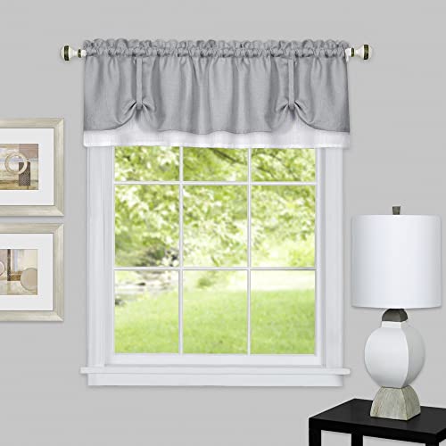 Achim Home Decor Darcy Mjuk gardinkappa, grå och vit, 147 x 36 cm (B x L), 3,8 cm stångficka, ljusfiltrerande kappa för kök och badrum