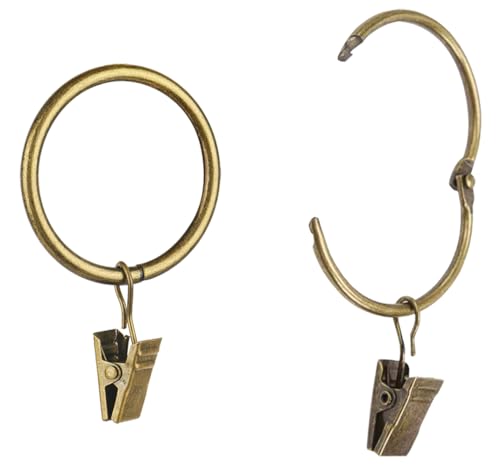 Yrhrol 40 st öppningsbara gardinklämmor med ringar antik mässing 2 tum stark metall dekorativ gardinklämma, rostfria draperiklämmor ringar gardinstång klämmor hängare för badrum, vardagsrum och