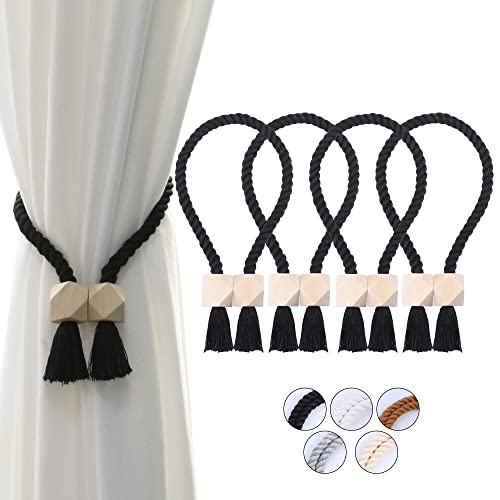 OCIOLI Set med 4 starka magnetiska handvävda bomullskopplingar för utomhusgardiner magnetisk gardinklämma gardindekoration (svart, 4)