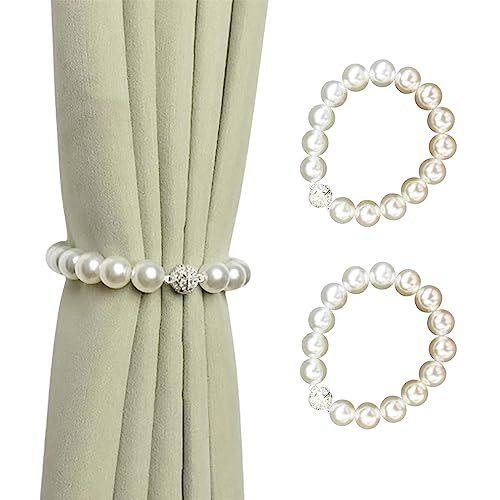 2-pack magnetiska gardinbindningar, gardinklämma snöre, gardindraperiklämmor gardinhållare, falsk pärla dekorativt rephållare för hem, kontor, hotellfönsterdekoration (25 cm)