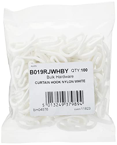 Merriway BH04576 (100 st) vita gardinkrokar i plast – förpackning med 100 stycken, 38 mm x 13 mm