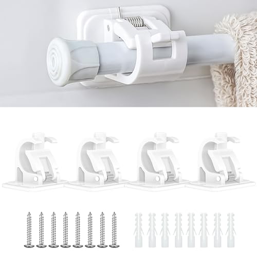 VIEVRE Gardinkrokar självhäftande, 4 stycken garagestångshållare utan borrning, gardinstång för limning med skruvar, stånghållare för gardinstång utan borrning, gardiner eller handduksstänger