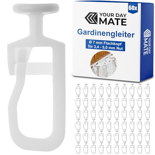 60 x Gardin gliders 7mm runt huvud, kan användas för smala och platta skenor med 3-4mm löpbredd och 8x3mm kammare, Gardintillbehör, Gliders 7mm, Hushållstillbehör, Heminredning, Gardinkrokar