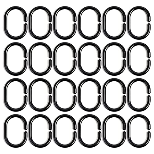 24 svart plast duschdraperiringar, gardinkrokar, C-formade duschdraperiringar, duschdraperitillbehör, används för duschskenor (4,2 x 6 cm)