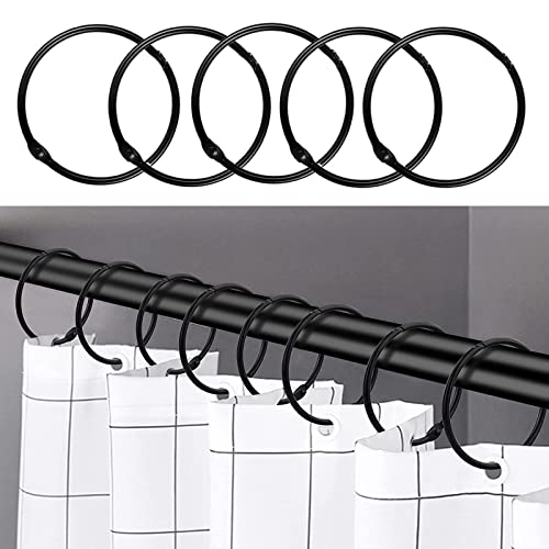 WEKIWGOT 24 st duschdraperiringar i rostfritt stål, gardinkrokar, lätt att installera, med inre diameter på 50 mm, lämplig för duschdraperier och fönstergardiner (svart)