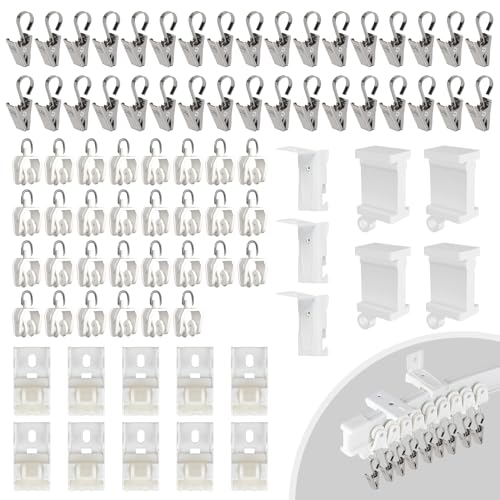 Efuturetime 81 st tillbehör för gardinskenor för tak, glidrullar, ändskydd, gardinkrokar i metall, monteringsfästen för gardinskenor, vit