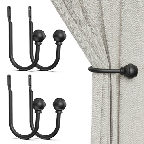 Hion Gardinhållare svart 4 st, gardinbindningar väggmonterade gardinkrokar hållare för draperier