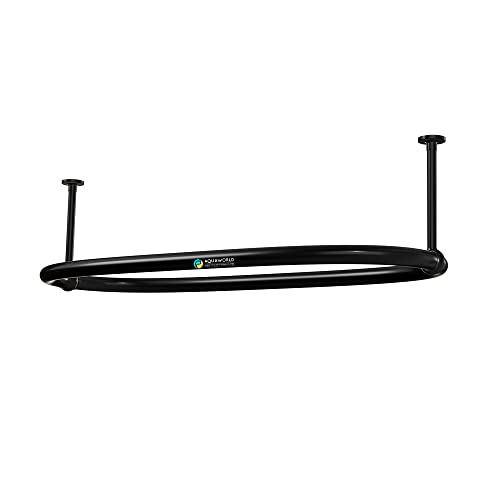 AQUAWORLD Traditionell oval duschdraperiskena – takmonterad med ådring av låg kolstål med justerbart stöd – svart matt gardinstång – 110 x 64 x 28 cm (gratis gardinkrokar/ringar)