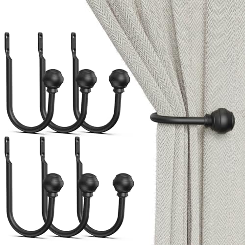 Hion Gardinhållare svart 6 st, gardinbindningar väggmonterade gardinkrokar hållare för draperier