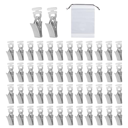 YOYEAH 30 stycken gardinkrokar i rostfritt stål för skenor för upphängning – gardinkrokar metall klämkrokar veckband krokar – gardinkrokar veckade krokar för tunga gardiner och dörrgardiner