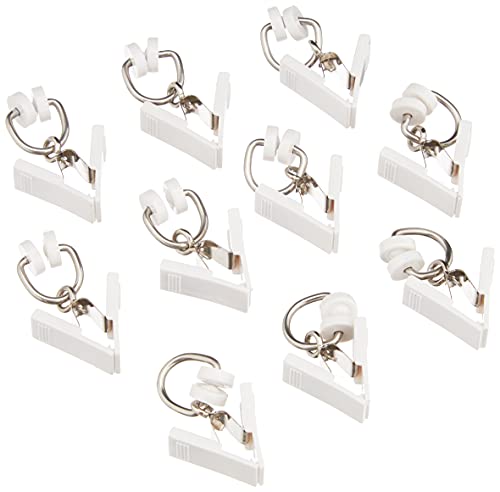 GARDINIA 115 T-gardinringar med plastklämmor för T-skenor, 20 st, 15,9 x 8,8 x 0,021 cm, Vit