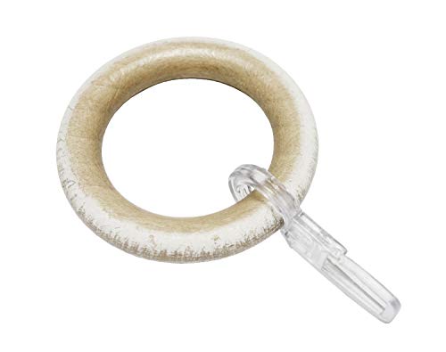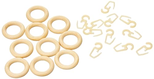 GARDINIA gardinringar för gardinstänger Ø 28 mm, Inklusive veckkrokar, 10 delar, Ringbredd 9 mm, Trä, Natur