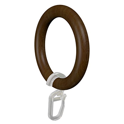 Flairdeco Gardinringar/ringar med veckkrokar, trä, valnöt, lackerad, 57/41 mm, 10 stycken