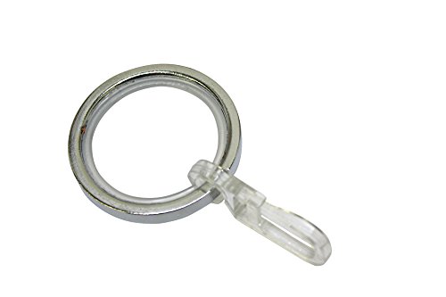 GARDINIA gardinringar för fönsterstänger/caféstänger, Inklusive veckkrokar, 10 st, Ringbredd 6 mm, Plast, Krom