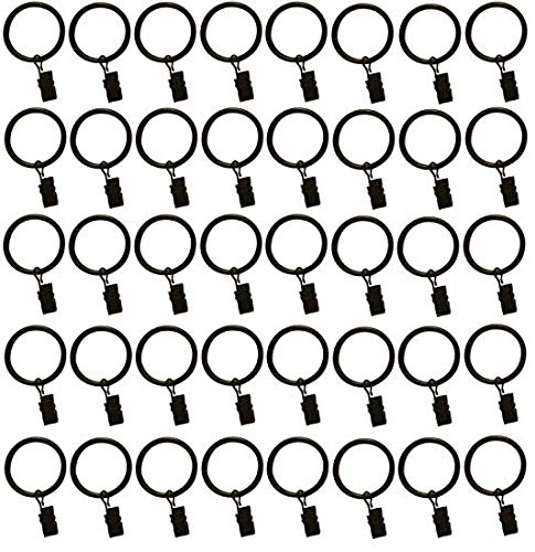 5 cm, set med 40 gardinringar i metall med klämmor och öljetter – svart