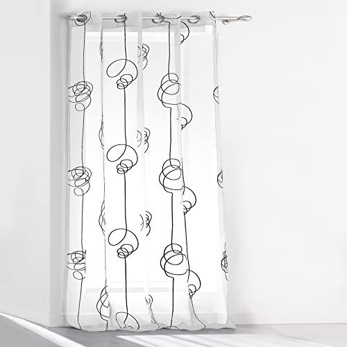 DOUCEUR D'INTERIEUR Gardinringar 140 x 240 tryckt voile slingrande vit/svart, tyg, vit/svart