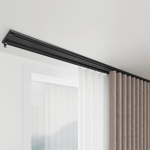 Tak dubbel gardinskena spårset, kraftig rumsavdelare, stång för vardagsrum sovrum svart 2,4 m (2 x 1,2 m)