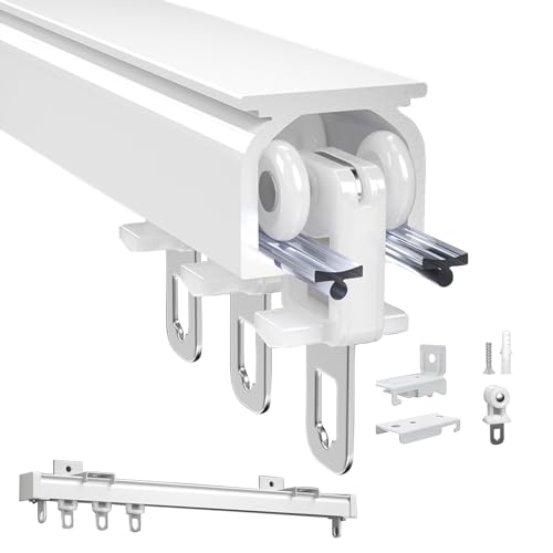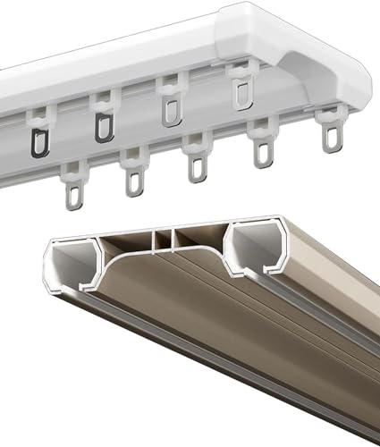 Gardinskena Tak Dubbelspår för gardiner, takmonterad Gardinskena System, Rumsavdelare Skjutgardinstång för integritet Vardagsrum Sovrum (Färg: Vit, Storlek: 10ft(2 * 5ft))