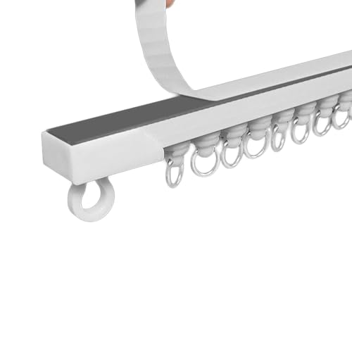 Takgardinskena, självhäftande gardinskena, självhäftande utan borrning, rumsavdelare takskena for gardiner, for slätt tak eller vägg(Ceiling mounted,300cm/9.84ft)