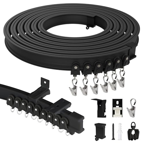 TOKPLNU Flexibel gardinskena – 5 m svart böjbar böjd takbana för burspråk, vägg- eller takmonterad gardinskena spårsystem för rumsavdelare, dusch husbil