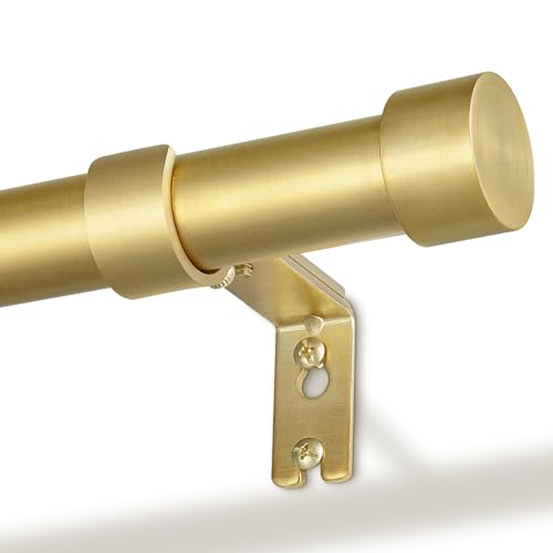 Ivilon Gardinstång för fönster – design med ändlock 1 tum stolpe. 28 till 48 tum färg varmt guld