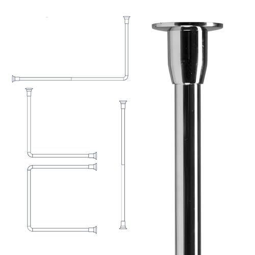 Böjd duschdraperi stång, 201rostfritt stål väggmonterad L-formad borrning eller ingen borrning justerbar utdragbar badrum badkar hörn gardinstång stång, 90 ~ 130 x 90 ~ 130 cm
