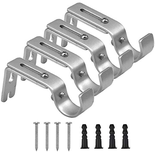Mikihat Hållare för gardinstänger, 4 stycken justerbar vägghållare, gardinstång i metall, hållare, gardinstänger, väggfäste med skruvar för gardinstänger (silver)