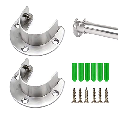 2-pack fläns-stångfäste i rostfritt stål för garderobsstång, U-format rörfäste, tillbehör för upphängning med 25 mm diameter, passar till garderob och gardinstång