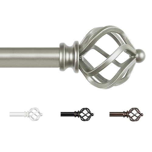 KAMANINA Gardinstång silver 80 till 218 cm lång, dekorativ gardinstång, utdragbar gardinstänger för fönster, vardagsrum, sovrum med twisted Cage ändstycke