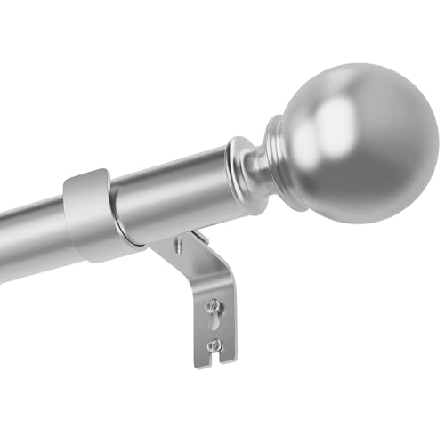 Gardinstång rostfritt stål gardinstång silver gardiner stång justerbara beslag set med rund ändstycke för matsal sovrum vardagsrum eller kök