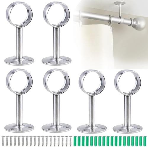 Gloryit 6 stycken gardinstångshållare av rostfritt stål, gardinstång, gardinstångshållare, tak för gardinstångshållare på tak eller vägg, installera gardinstång