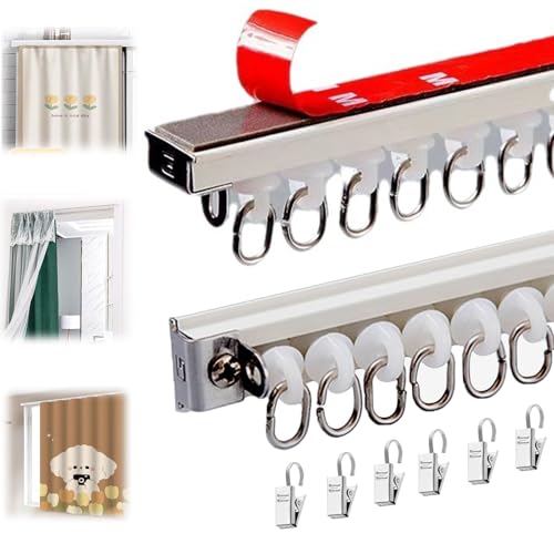 YLNANMI Ingen borr, självhäftande gardinspår, tak- eller väggmontering 2x40cm(80cm) – flexibelt takgardinspår, självhäftande gardinstång för fönster – lätt att installera gardinskenor.