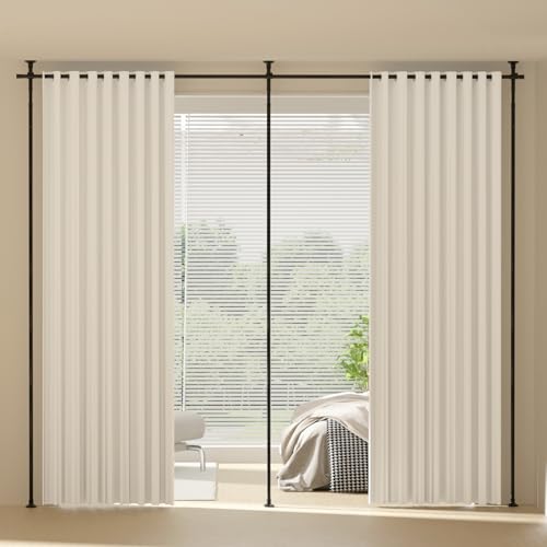 SMONTER Rumsavdelare, gardinstång, ingen borrningsspänningsstänger för rymdskiljevägg, golv till tak fristående rumsavdelarstång för rumsavdelning, vertikal gardinstativ 1,2–3 m (H) 71–365 cm (B)