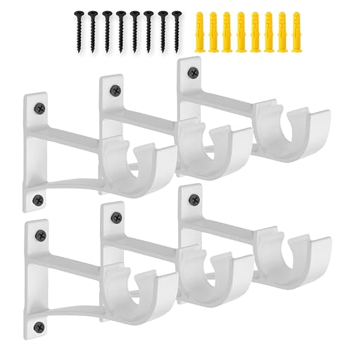 UFURMATE Gardinstångsfästen, 6 st takmonterade fästen i aluminiumlegering dubbla gardinhållare fönsterdraperistång hängande stöd för 23 mm – 26 mm gardinstång (vit)