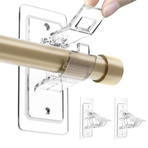 BelleVive 2-pack gardinstångsfästen – ingen borrning, självhäftande PET-gardinstånghållare, skadefria, justerbara spikfria krokar för vardagsrum och badrum