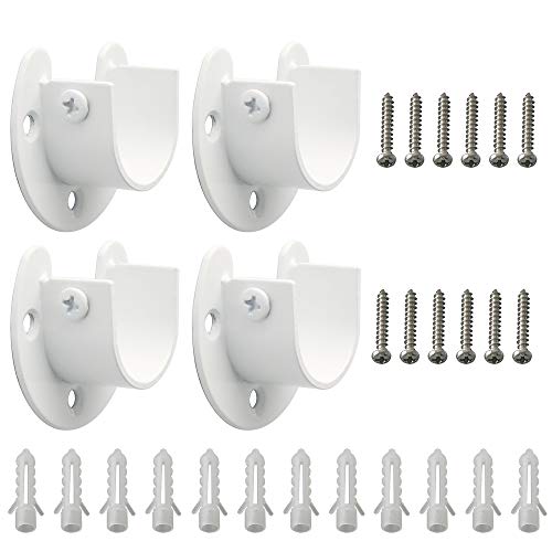 SAYAYO Gardinstångshållare U-formade hylsor, garderobsstångsslut för gardin eller skåp, blank vit rostfritt stål, 4 st, EFL8001UW-4P-FR
