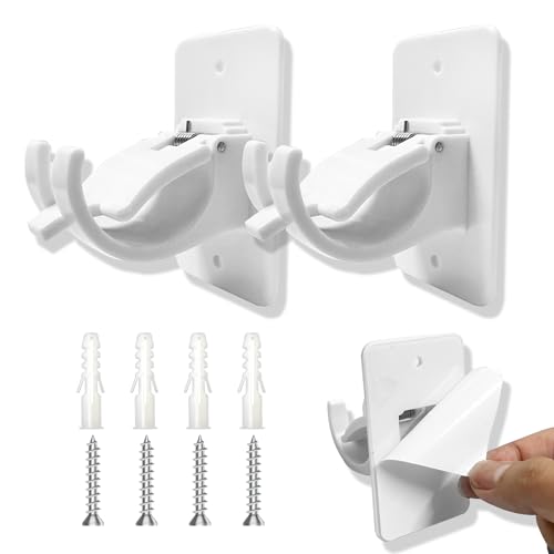 2 stycken Justerbar gardinstångshållare, självhäftande gardinstänger, gardinstång stöd, Gardinstångsfästen, Självhäftande eller skruvmontering. Lämplig för vardagsrum, sovrum, badrum (Vit).