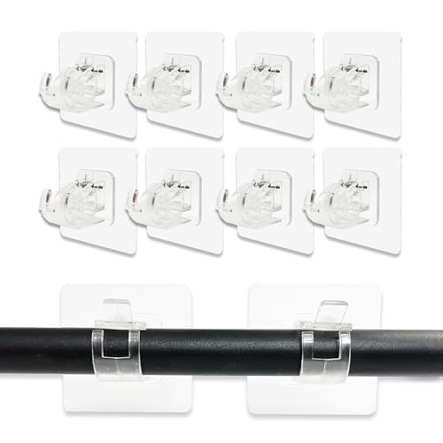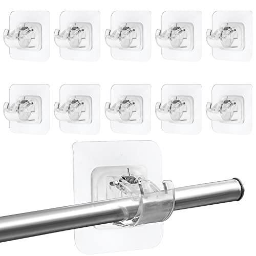 Fyihoxi 10 stycken gardinstångshållare utan borrning, genomskinliga självhäftande stångfästen, självhäftande krokar för gardinstänger för kök, badrum