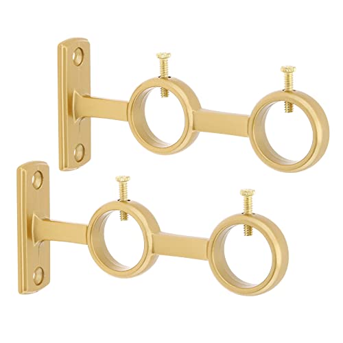 HOJLKLD Dubbel gardinstångsfäste, 2 st slitstarka gardinstångshållare för 2,5 cm och 5/8 tum stång, väggmonterad stånghållare för vardagsrum sovrum gardinstänger, draperistänger (guld)