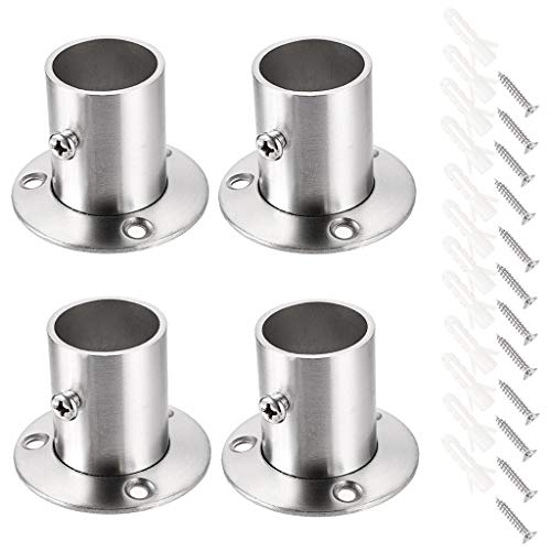 Sumnacon 4 st gardinstångshållare stödfäste stånguttag fläns set rostfritt stål garderobsstång ändstöd för garderobsgardin (silver)
