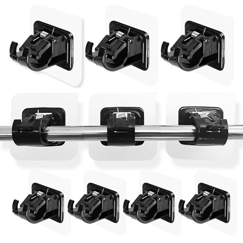 8 stycken gardinstångshållare, gardinstång utan borrning, gardinstång, fäste, självhäftande, gardinstångshållare, gardinkrokhållare, badrum, fast stånghållare (svart)