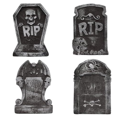 POPOYU 4-pack halloween skum gravstenar, utomhus halloween RIP trädgård gravstenar dekorationer, vintage kyrkogård stora gravstenar gårdsskylt huvudsten för Halloween. Inomhus utomhusdekoration